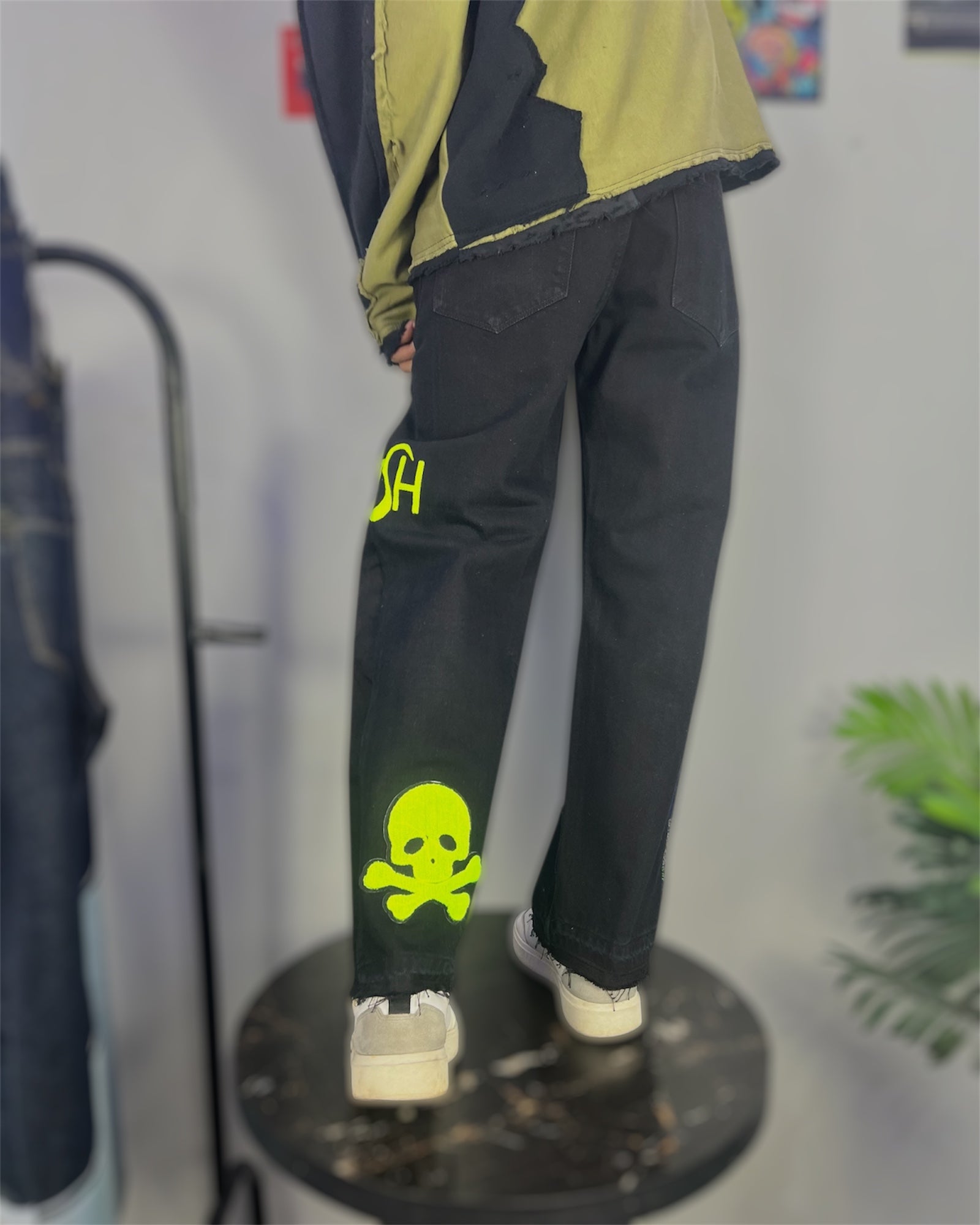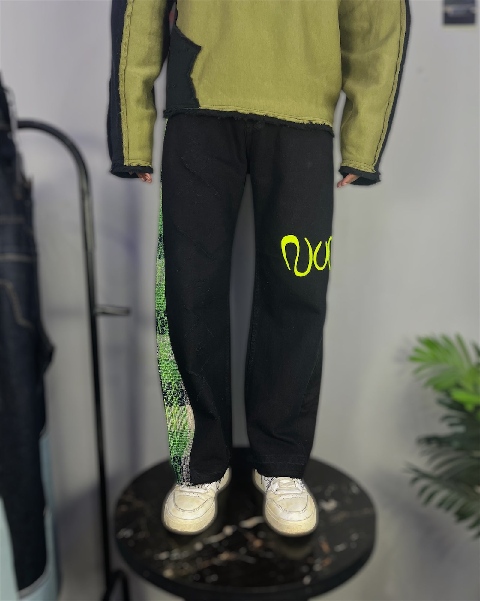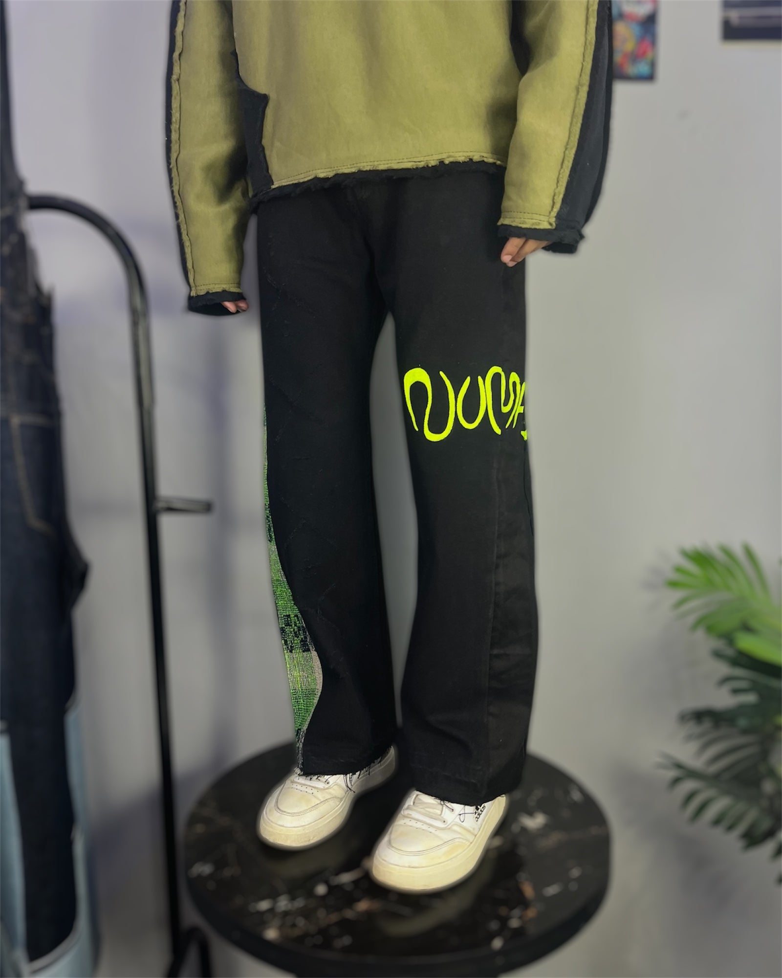 Introducing the BLACK denim a signature piece from نمائش that Redefining for the streets, washed for the bold. The SIDED PANEL OR HAND PAINTED NUMAISH with our Dust Fade Wide-Leg Jeans — designed for those who move with confidence and don’t follow trends, they define them. Featuring a unique vintage-inspired wash, these jeans bring a clean yet rugged vibe that fits right into elevated streetwear culture.