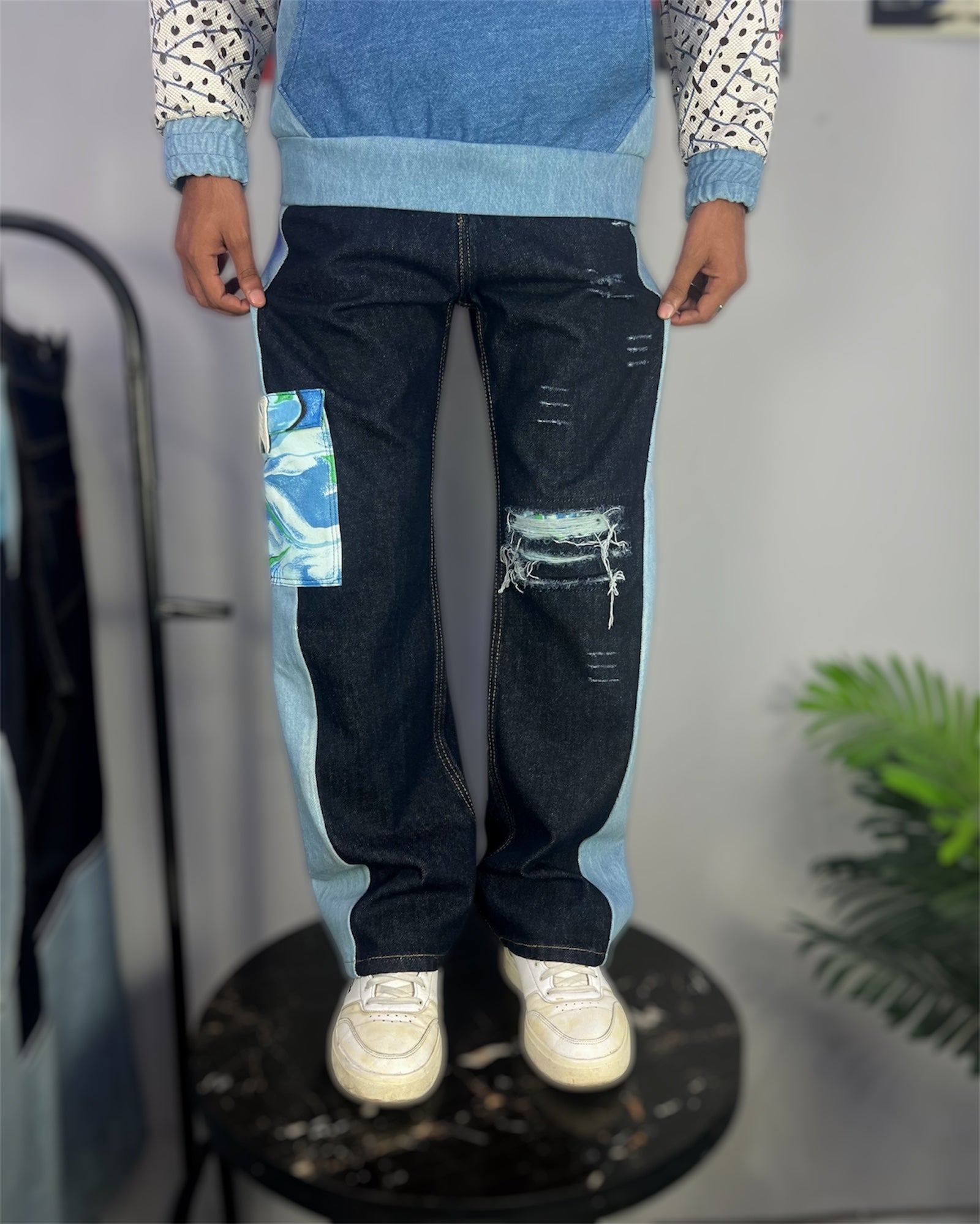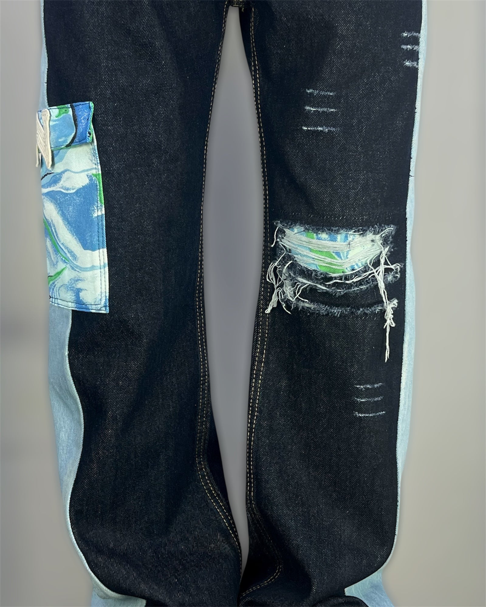 DESIGN;    Sided panel or sided pocket and back printed denim