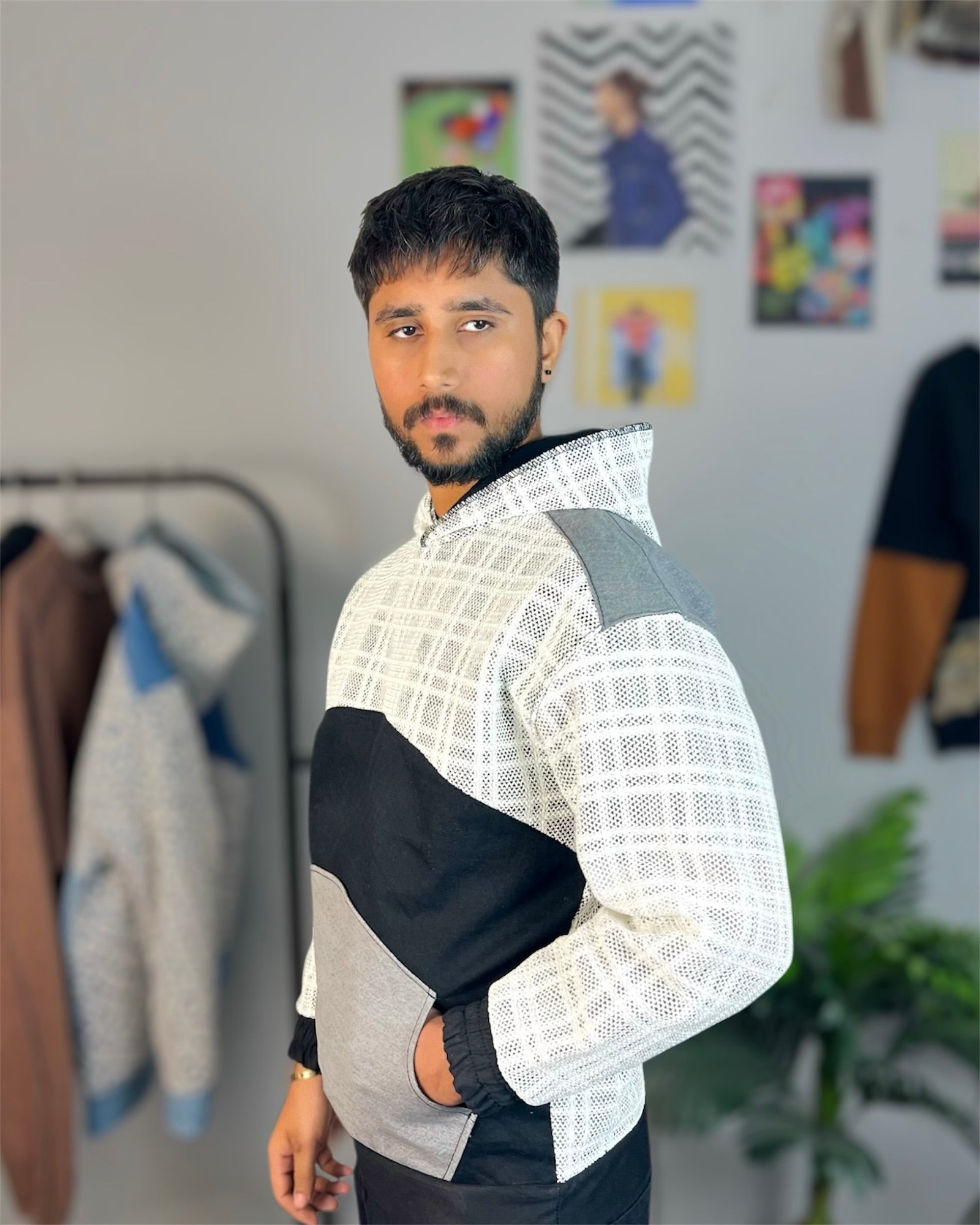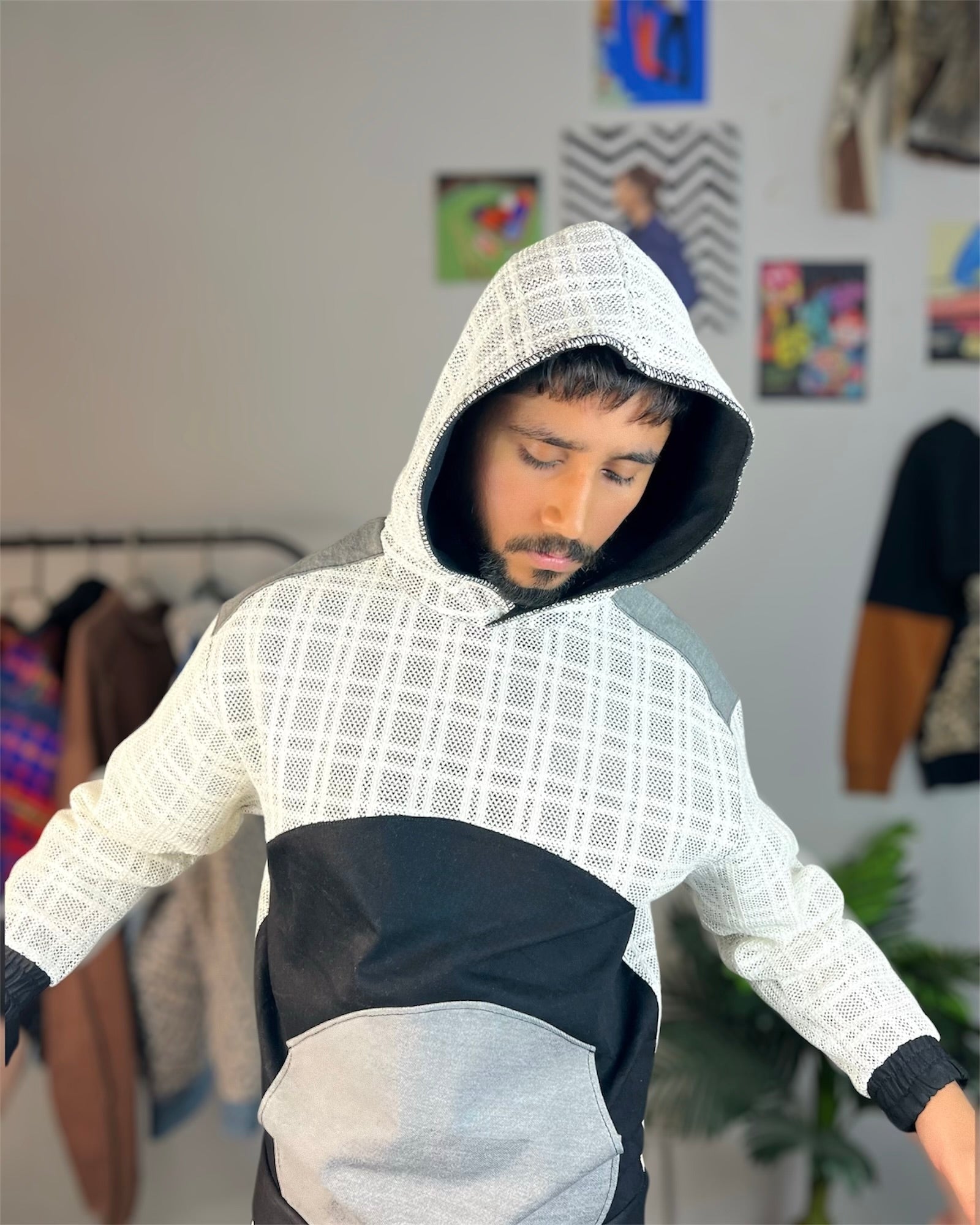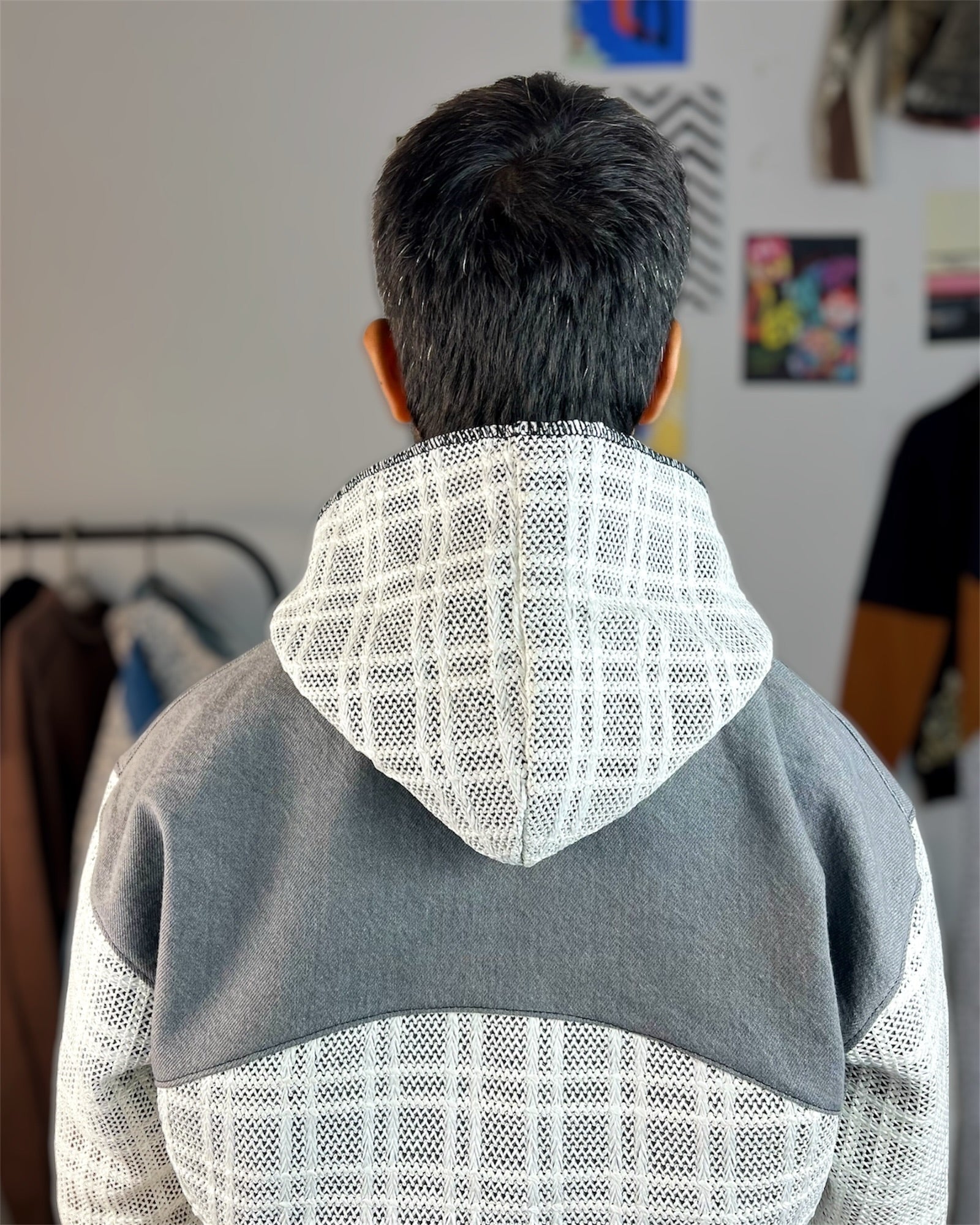 Introducing our DESIGNER EXPERIMENTAL "SSNH5" Long Sleeve HOODIE, for both MEN/WOMEN or a blend of MESH cutted fabric and denim fabric to premium craftsmanship. This SSNH5 TWO TONE oversized HOODIE is made from 100% cotton. With a denim fabric weight of 10 oss, it offers both durability and comfort. The full-sleeved design makes it perfect for winter season..