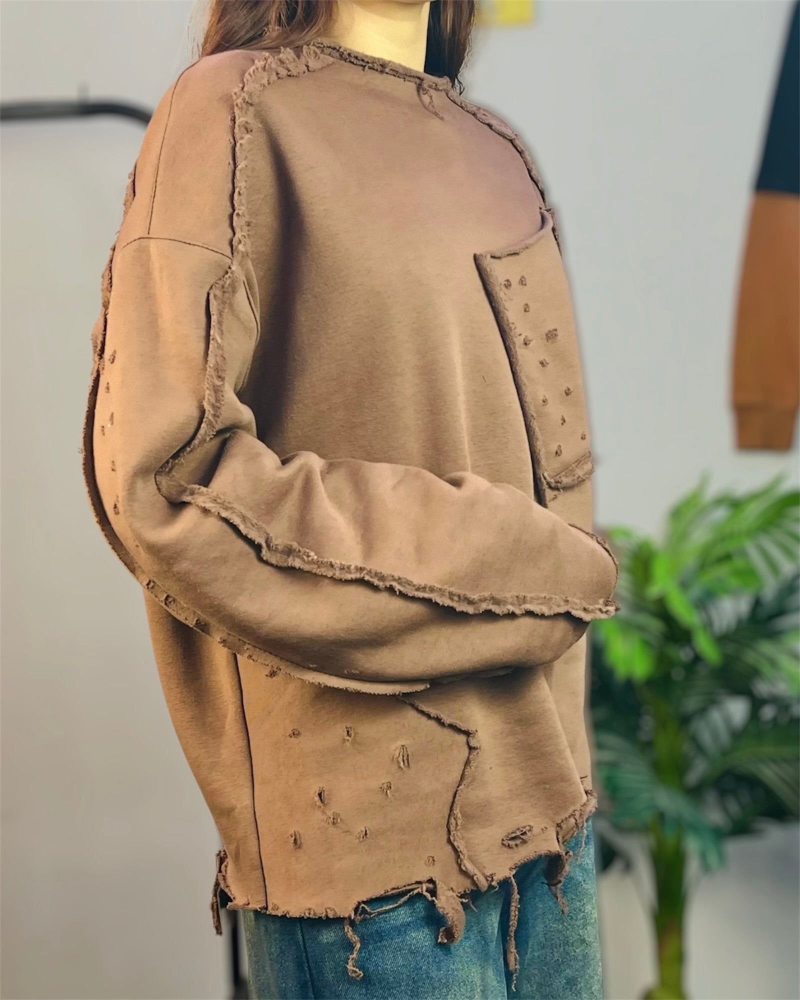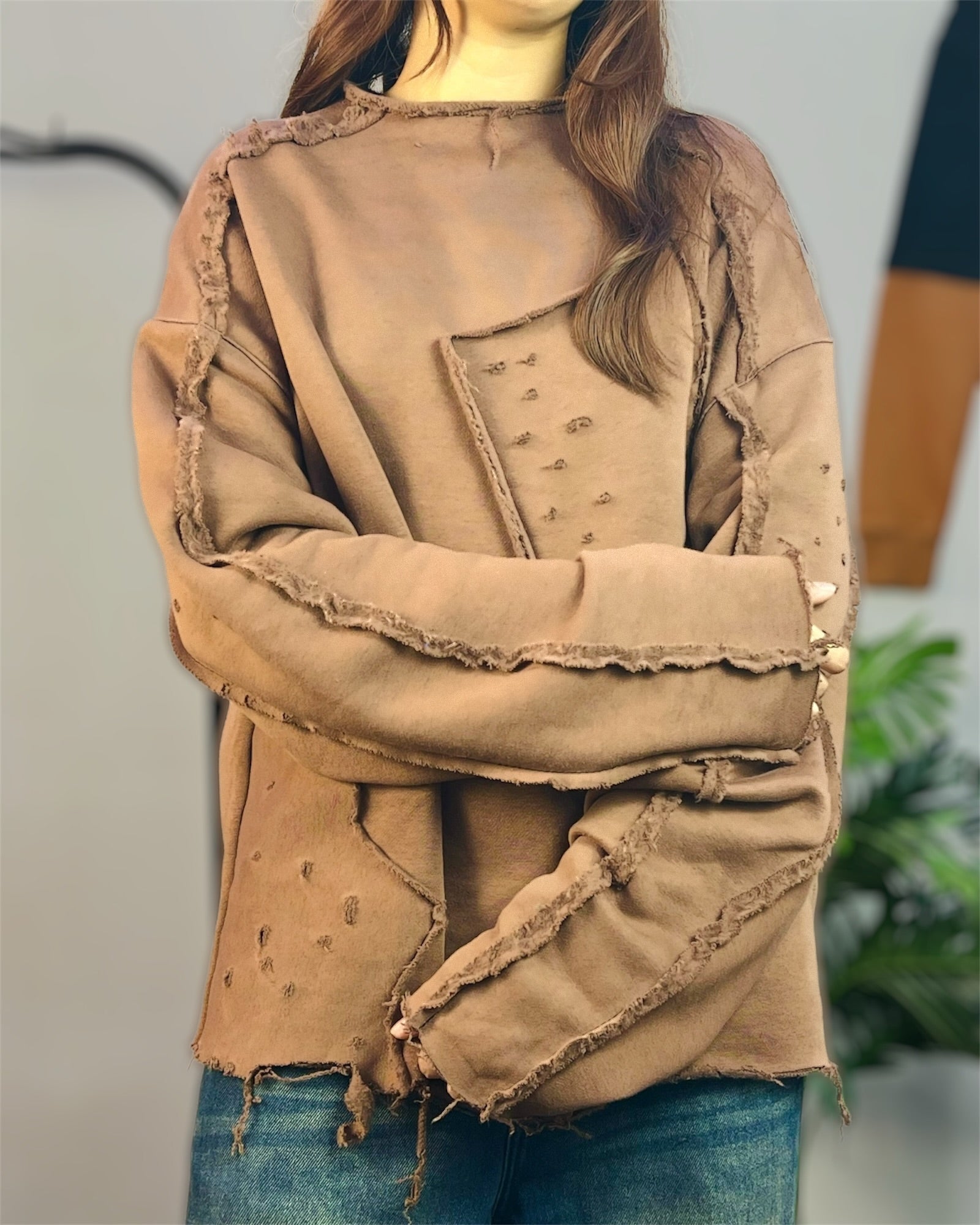 Introducing our DESIGNER "SSNS2" Long Sleeve ROUGHLOOK SWEATSHIRT, for both MEN/WOMEN or a blend of RAGLON SLEEVE but similar to normal sweatshirt panel plus patchwork also premium craftsmanship. This SSNS2 oversized SWEATSHIRT is made from 100% cotton, ensuring a soft and luxurious feel. With a fabric weight of 320 GSM, it offers both durability and comfort. The full-sleeved design makes it perfect for winter season..